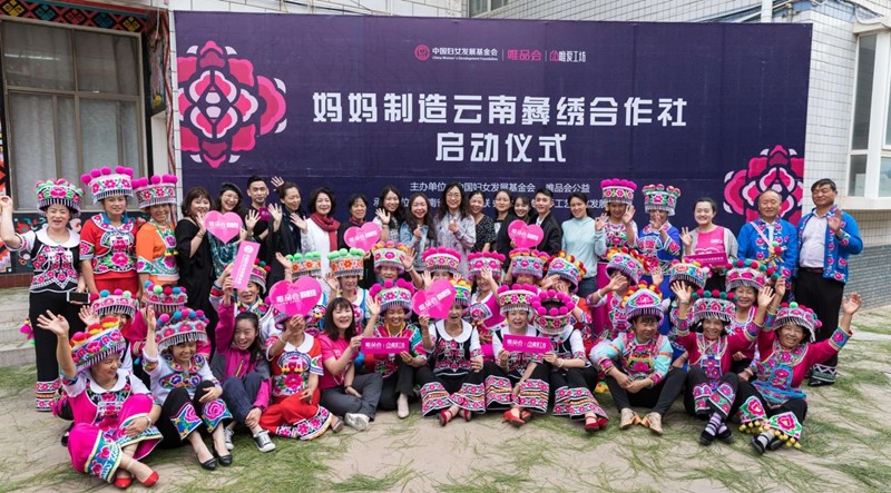 唯品会捐赠支持的云南楚雄守艺彝绣“妈妈制造合作社”合影